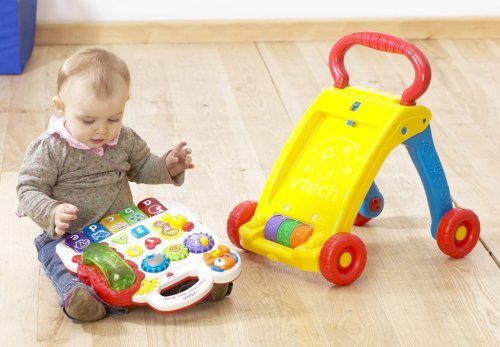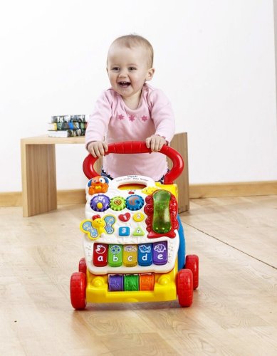 - VTech First Steps Baby Walker has a sturdy design to support and nurture babys first steps- Features a detachable learning centre packed with musical, interactive and educational activities