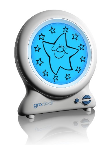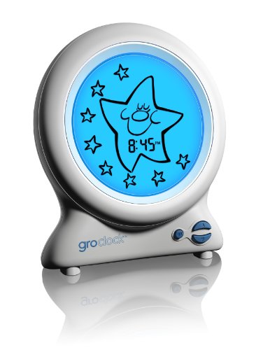 - Glowing screen shows images of moon and sun to communicate sleep and wake-up time to children- Stars go out one-by-one during the night to show the passing of time Includes fun bedtime story book