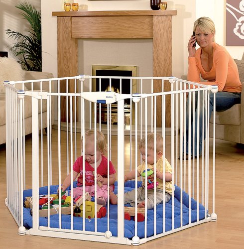 - Can be used a playpen, stair gate, fireguard or room divider- Simultaneous top and bottom locking system