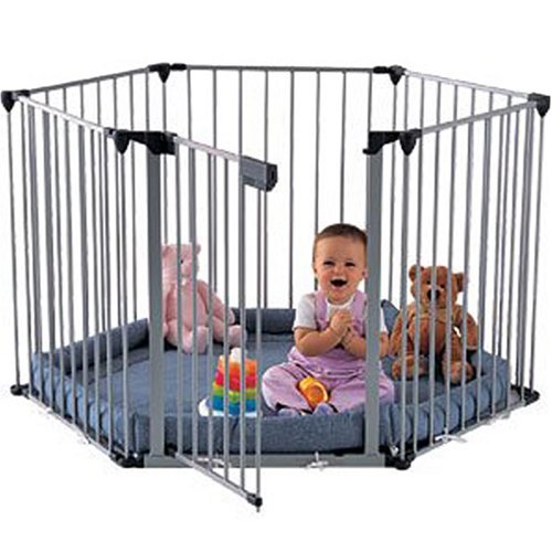 - 6 x 60 cm panels (one gate opening) interlocking on a hinge system to provide maximum flexibility should you use the Baby Den as a stair gate or Hearth gate
