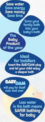 The Baby Dam Bathwater Barrier seals perfectly in any chosen position across all standard straight sided baths.Have a COOL !