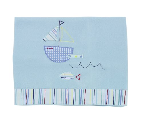- Baby Blue Fleece Blanket with striped cotton botton edge.