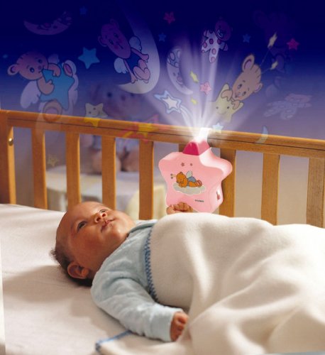- A star-shaped dreamshow that projects magical, dream-time characters, stars and moons onto the ceiling- Plays 3 soothing lullabies to gently send baby to sleep